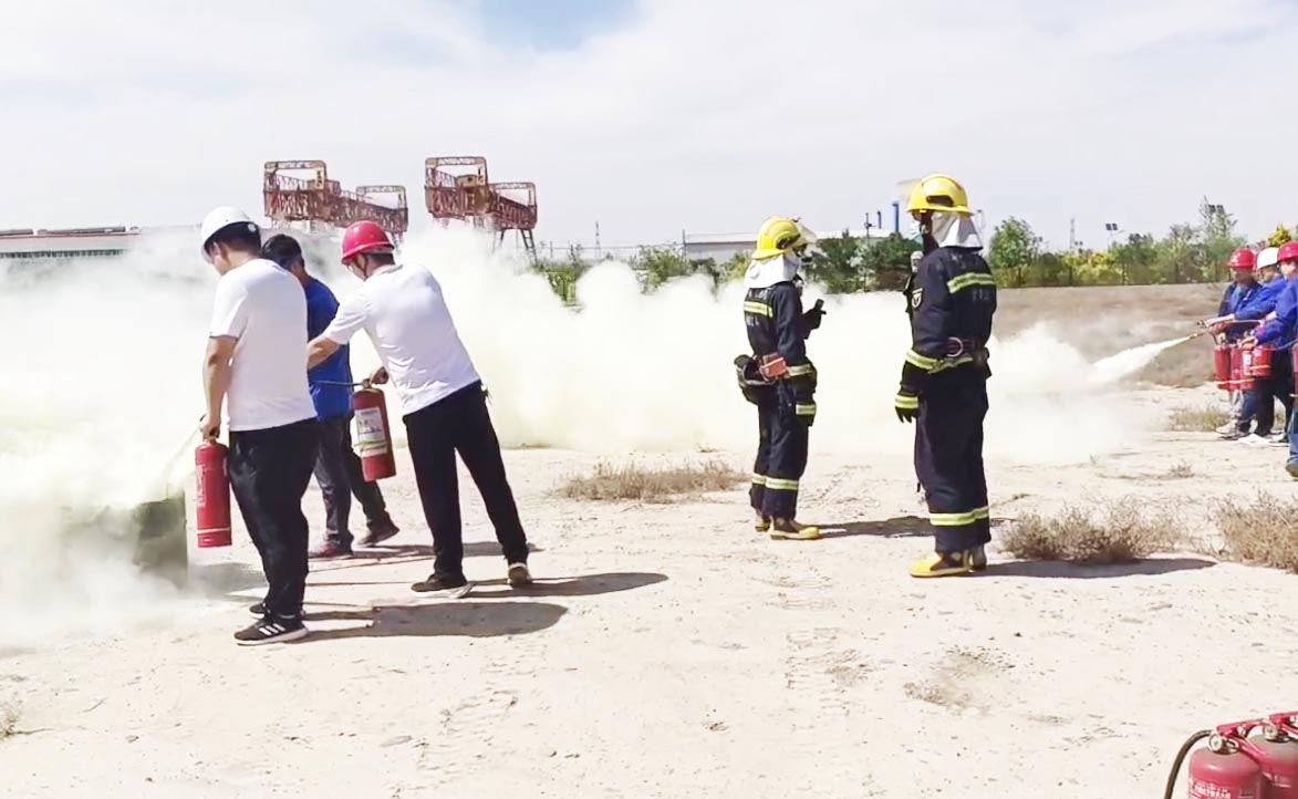 此次活動(dòng)參加人員主要有新能源公司相關(guān)部室職工、園區(qū)各單位觀摩人員,嚴(yán)格按照應(yīng)急救援演練活動(dòng)方案進(jìn)行。演練中,指揮部小組成員各盡其責(zé),緊張而有序的將車間生產(chǎn)人員安全撤離至治沙車間門口空曠場(chǎng)地,消防車、急救車迅速進(jìn)入事故現(xiàn)場(chǎng)進(jìn)行滅火、急救工作。涼州區(qū)消防救援康寧站副站長(zhǎng)陳興為大家詳細(xì)講解了如何正確使用滅火器并做了示范演練,現(xiàn)場(chǎng)職工按照使用方法和滅火步驟進(jìn)行實(shí)操滅火;永昌鎮(zhèn)衛(wèi)生院主治醫(yī)師王廷偉系統(tǒng)地講解了急救知識(shí),現(xiàn)場(chǎng)模擬心肺復(fù)蘇搶救的正確操作方法。演練結(jié)束后,全體職工聽取了各位領(lǐng)導(dǎo)對(duì)此次安全生產(chǎn)應(yīng)急演練的精彩點(diǎn)評(píng)及總結(jié)。