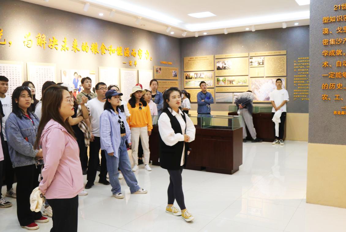 在沙產(chǎn)業(yè)展廳,團(tuán)建成員們了解了錢學(xué)森和宋平關(guān)于沙產(chǎn)業(yè)的概念、發(fā)展歷程以及他們?yōu)榉郎持紊乘龅呢暙I(xiàn)和努力,并實(shí)地觀看了固沙車機(jī)械化鋪設(shè)草方格的演示,進(jìn)一步了解了沙漠的由來和危害,懂得了治沙的意義與目的。