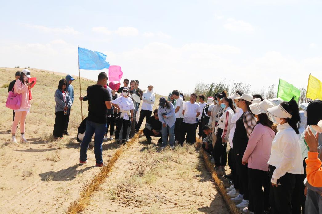 秉著加強(qiáng)團(tuán)隊(duì)凝聚力,提升團(tuán)隊(duì)間的團(tuán)結(jié)協(xié)作能力,團(tuán)建成員開展了沙漠徒步、栽植沙生植物、趣味運(yùn)動(dòng)等團(tuán)隊(duì)活動(dòng)。