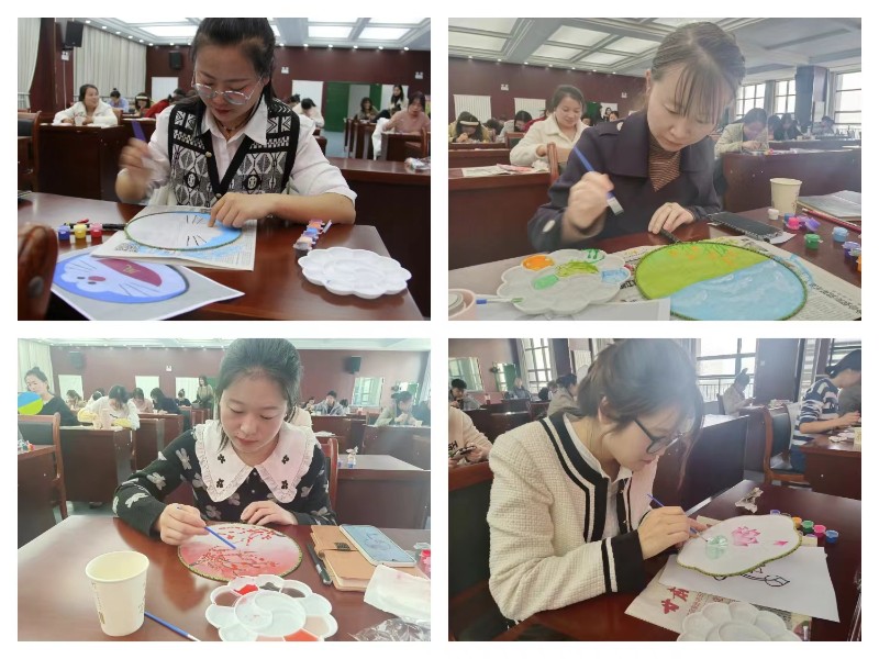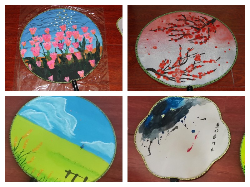 在團扇活動中,工作人員給大家介紹了團扇的文化和發(fā)展歷史以及如何在團扇上作畫的方法技巧,并向大家發(fā)放了制作材料,經(jīng)過一個小時的精心制作,各種色彩,各種圖案的團扇精彩呈現(xiàn)。大家看著自己的作品,心中涌起了滿滿的成就感。