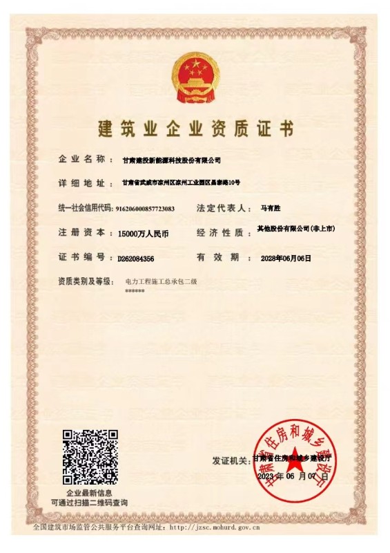 喜報(bào)!熱烈慶祝甘肅建投新能源科技股份有限公司資質(zhì)升級(jí)成功