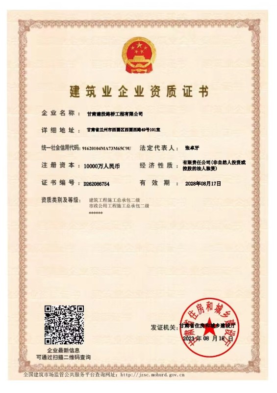 資質(zhì)提升是今年的重要業(yè)務(wù)目標(biāo)之一,甘肅建投新能源科技股份有限公司以“三抓三促”行動(dòng)為抓手,立足主責(zé)主業(yè),強(qiáng)化實(shí)干擔(dān)當(dāng),聚力提質(zhì)增效,使公司資質(zhì)水平再上新臺(tái)階。按照資質(zhì)提升規(guī)定,甘肅建投新能源公司近期獲批電力工程施工總承包二級(jí)資質(zhì)、市政公用工程施工總承包二級(jí)資質(zhì)、建筑工程施工總承包二級(jí)資質(zhì)。截至目前,新能源公司已具備電力工程施工總承包二級(jí)資質(zhì)、市政公用工程施工總承包二級(jí)資質(zhì)、建筑工程施工總承包二級(jí)資質(zhì)、固定式壓力容器其他高壓容器(A2)、環(huán)保工程專業(yè)承包三級(jí)、承裝(修、試)電力設(shè)施許可(四級(jí))、林木種子生產(chǎn)經(jīng)營許可等。