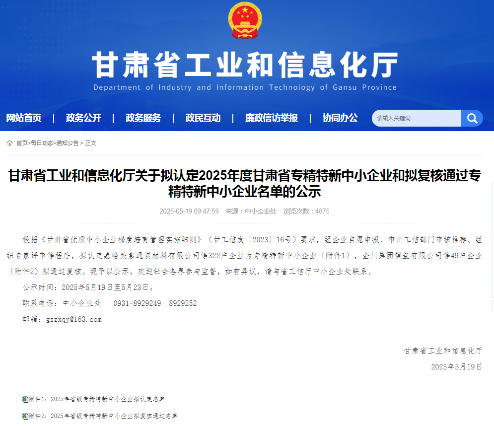 近日,甘肅省工業(yè)和信息化廳公布了2025年度“專精特新”中小企業(yè)認定名單,甘肅建投新能源科技股份有限公司憑借在新能源領(lǐng)域的卓越表現(xiàn)和創(chuàng)新能力,成功獲評甘肅省“專精特新”優(yōu)勢企業(yè),這不僅是對公司過往成績的高度認可,也為未來發(fā)展注入了強大動力。