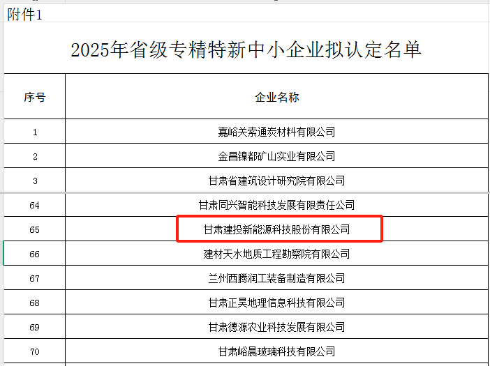 喜報!甘肅建投新能源科技股份有限公司獲評2025年度甘肅省“專精特新”企業(yè)稱號